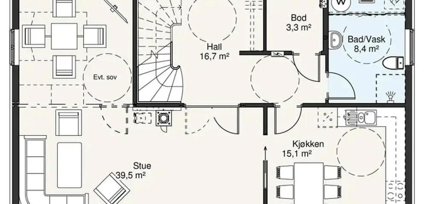 Med Mesterhus Karita har arkitekten lagt vekt på å skape et harmonisk og tidløst fasadeuttrykk. Den midtsentrerte balkongen og et overbygd inngangsparti er med på å gi huset en herskapelig stil. Den romslige hallen med trapp opp til andreetasje og doble dører inn til stua, gir et flott inntrykk når du eller dine gjester kommer inn i huset. Det er også praktisk med god plass der hele familien kommer inn, med en romslig bod, bad og vaskerom lett tilgjengelig.