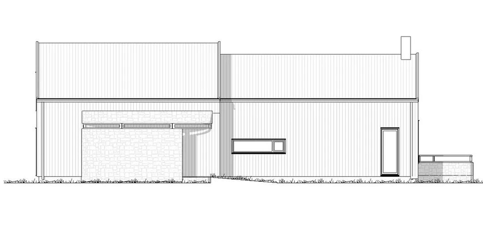 Når det gjelder terrengtilpasning, trenger hytta en flate på ca 25 meter i lengde og 15 meter i bredde. Valget av materialer og farger, med likhet mellom tak og vegger, gjør hytta mindre iøynefallende. Hytta har en vakker mørk seterbrun farge, som står i kontrast til de grå stenene i buene.