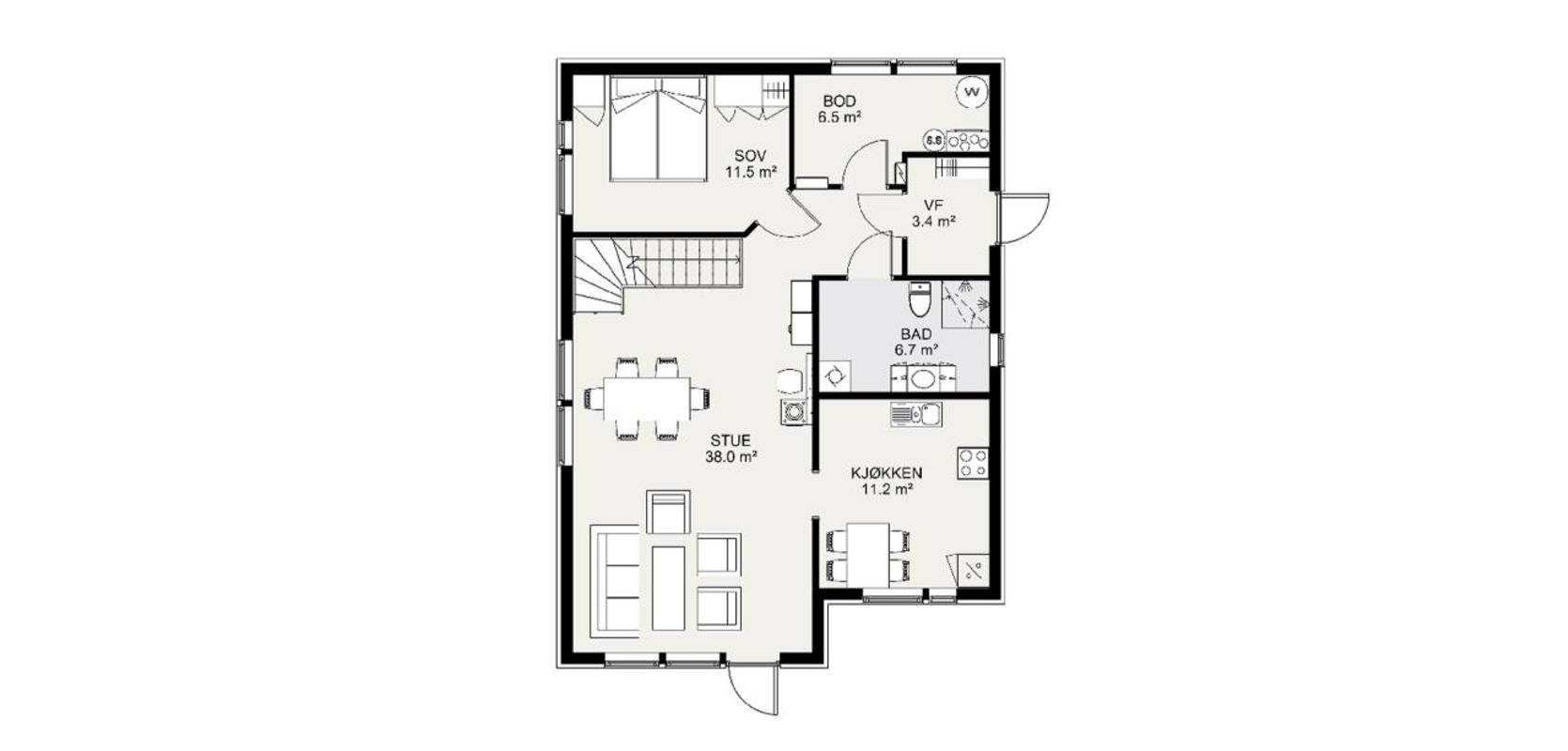 Mesterhus Kvalheim er det perfekte huset for deg som ønsker et koselig og tidløst hjem på mindre tomteareal.