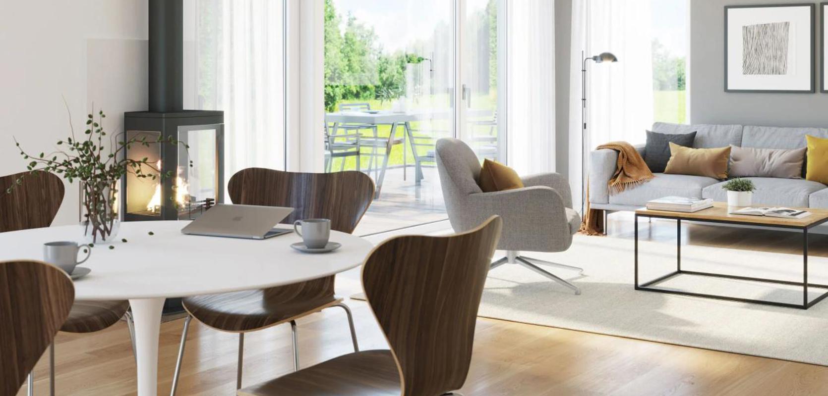 Skansen er et moderne hus med store vindusflater, pulttak og elegant stående trekledning. Samtidig som huset er svært stilig, har det alt en familie trenger.